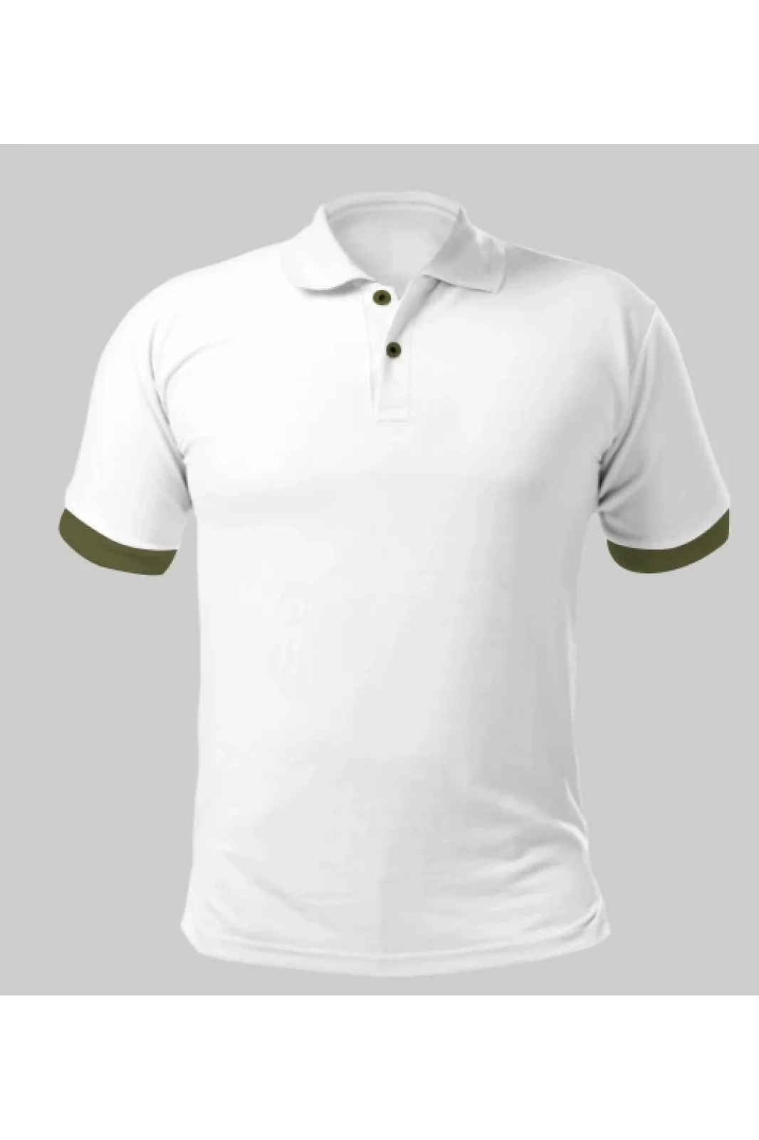 Beyaz Polo Yaka Tişört Kol Ucu Haki