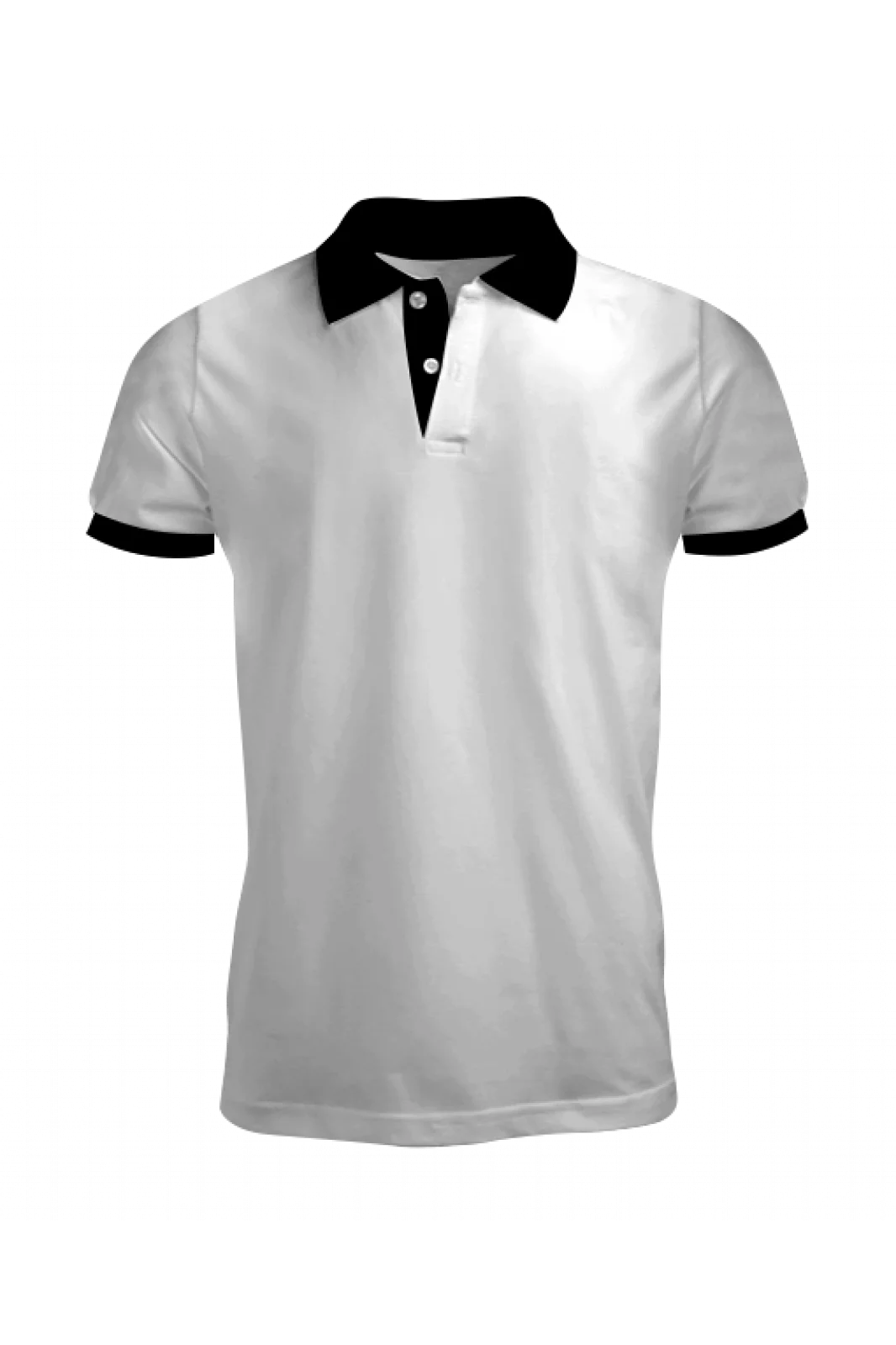 Beyaz Polo Yaka Tişört Siyah Yakalı Çift Renkli