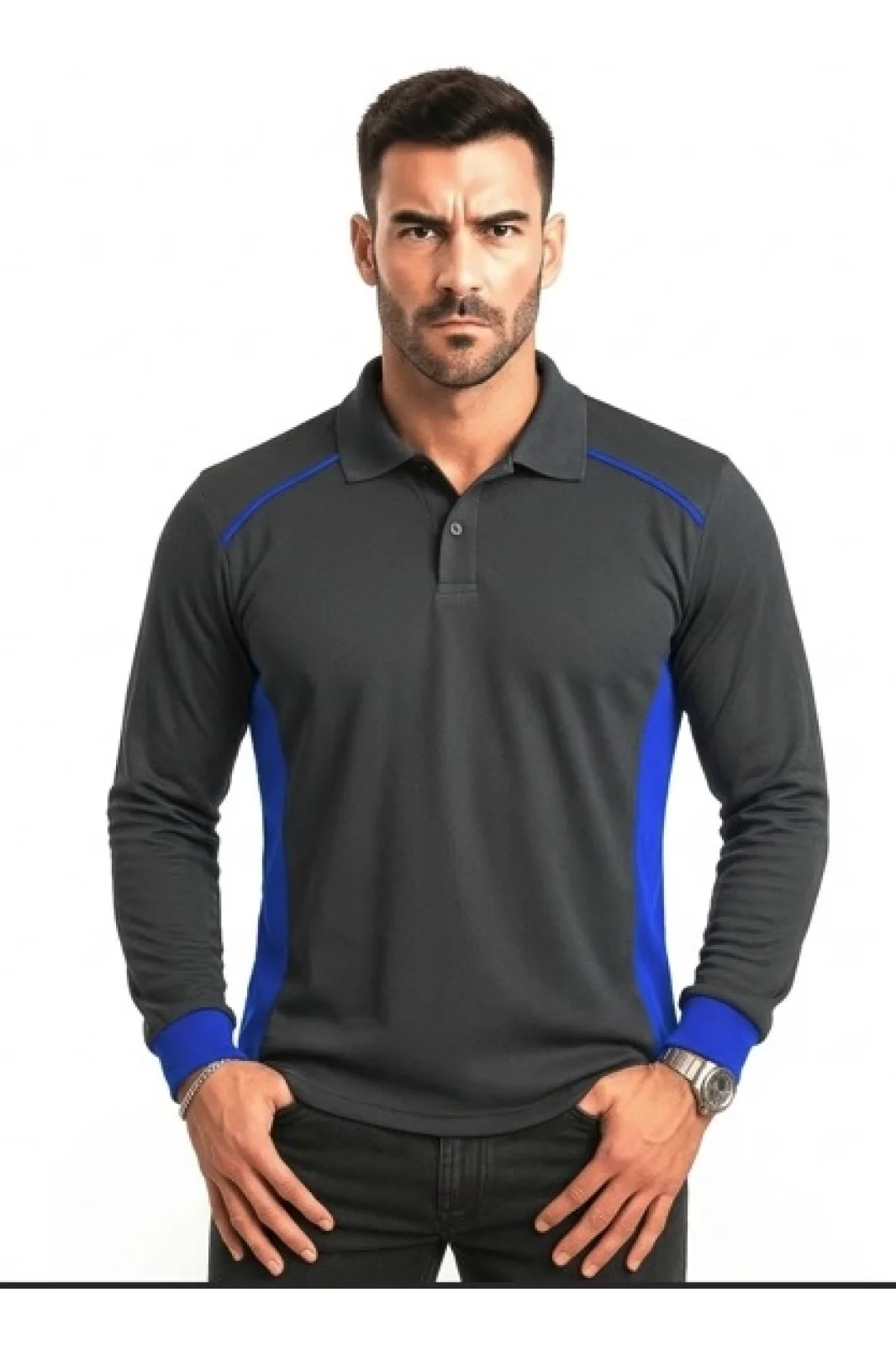 Siyah Polo Yaka Tişört SAX Yakalı Çift Renkli