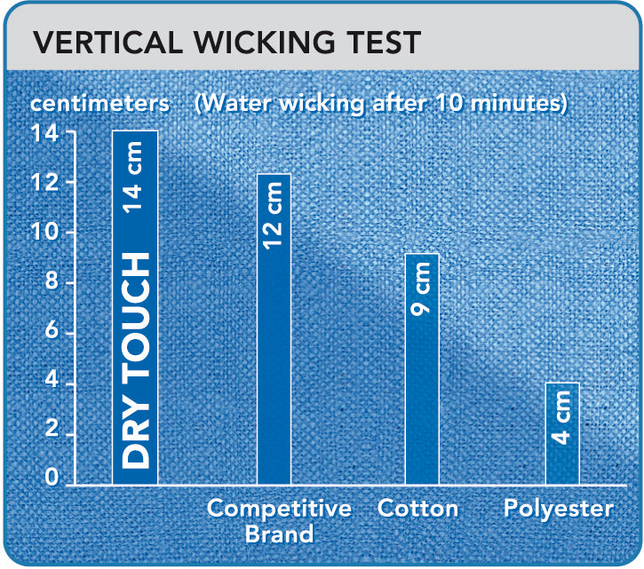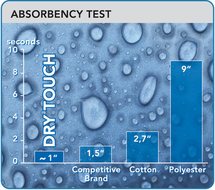 Yapılan testlerde DRYTOUCH® kumaşların pamuğa göre nemi 2,7 kat daha hızlı emdiği gözlemlenmiştir.