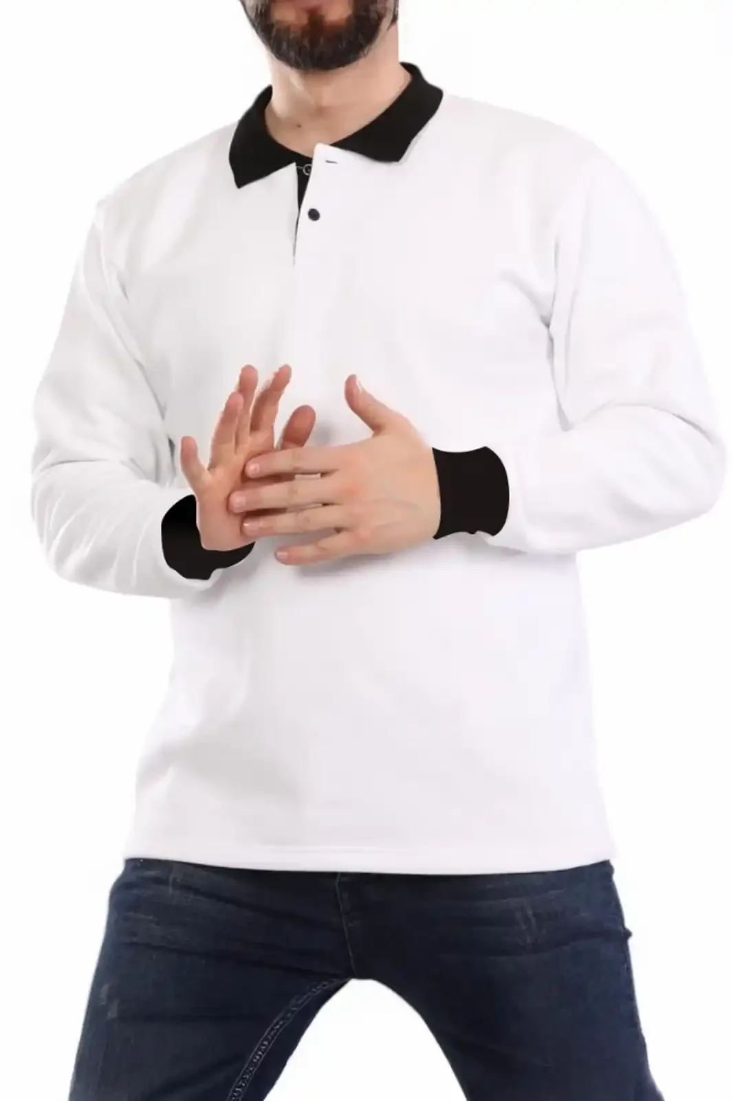 Birinci kalite kumaşı ve beyaz-siyah çift renkli tasarımı ile öne çıkan Kışlık Beyaz Çift Renkli Polo Yaka Sweatshirt Siyah Yakalı, hem günlük hem iş ortamlarında şıklığı tamamlar. XS–5XL beden seçenekleri geniş kitlelere hitap eder.