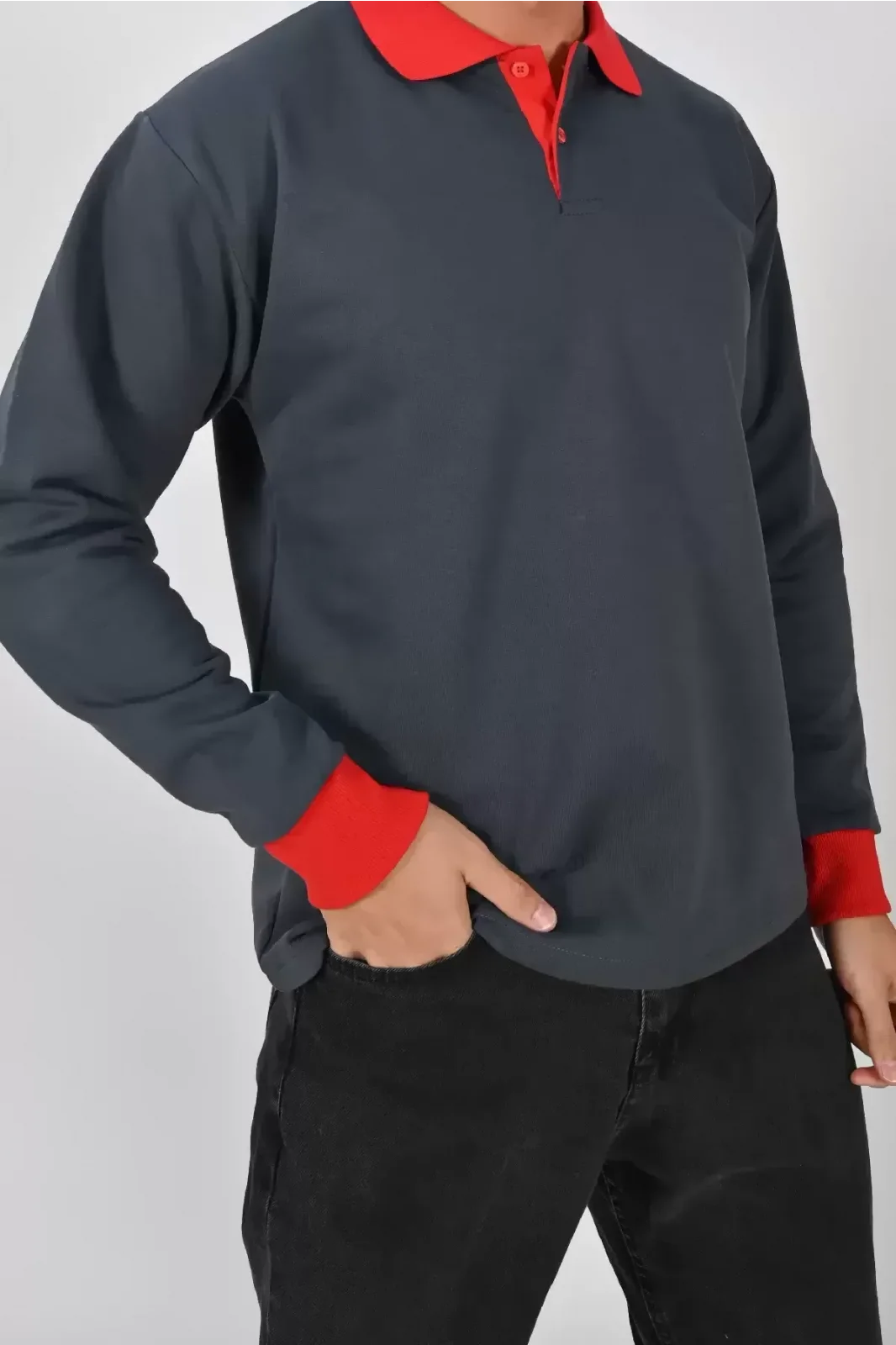 Füme ve kırmızının modern uyumuyla öne çıkan Kışlık Füme Çift Renkli Polo Yaka Sweatshirt Kırmızı Yakalı, güçlü bir görünüm kazandırır. XS–5XL beden seçenekleri herkes için uygundur. Kaliteli kumaşı uzun ömürlü kullanım imkânı verir.