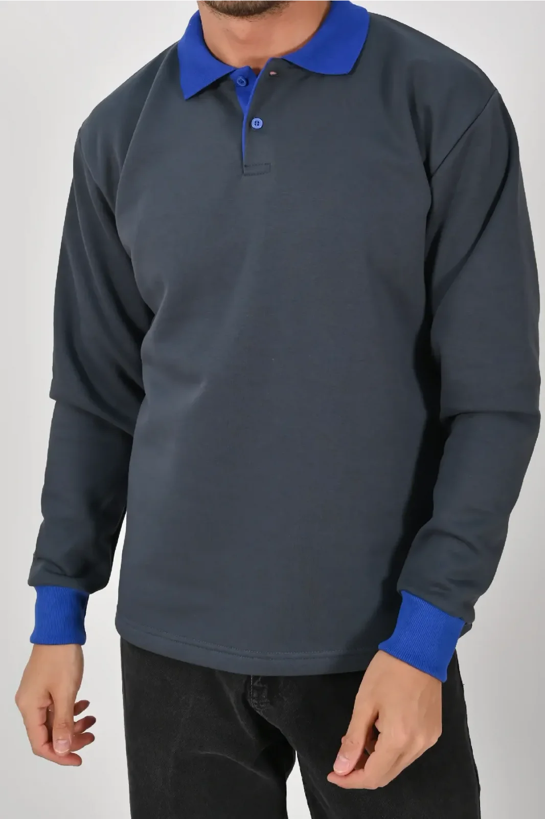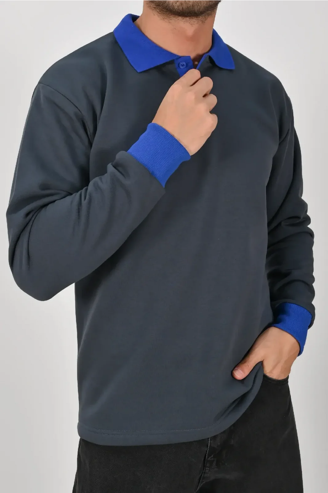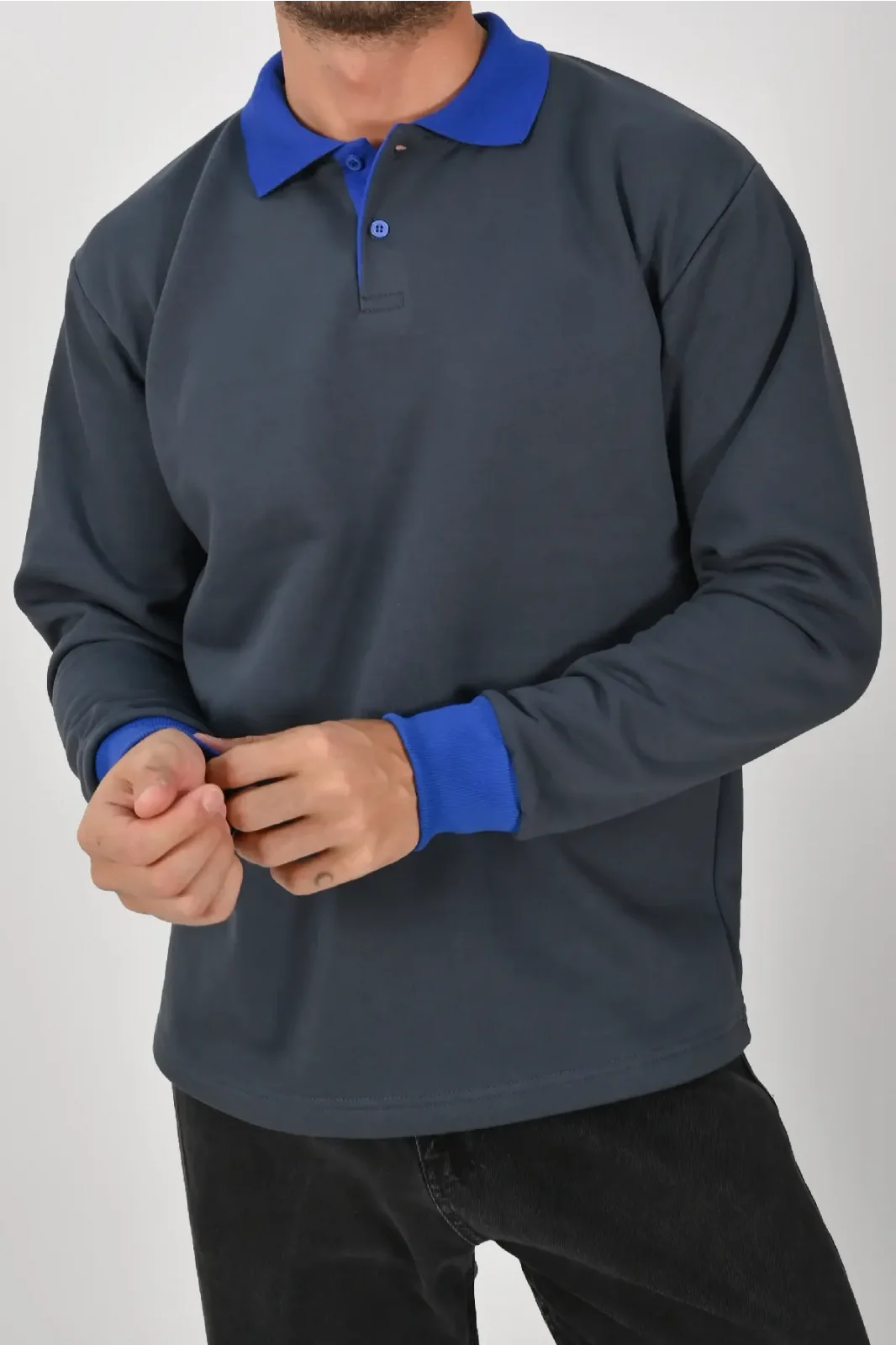 Füme ve sax mavisinin şık kontrastıyla tasarlanan Kışlık Füme Çift Renkli Polo Yaka Sweatshirt Sax Yakalı, hem sokak modasında hem günlük kullanımda öne çıkar. XS–5XL beden seçenekleri ile farklı vücut tiplerine uygundur.