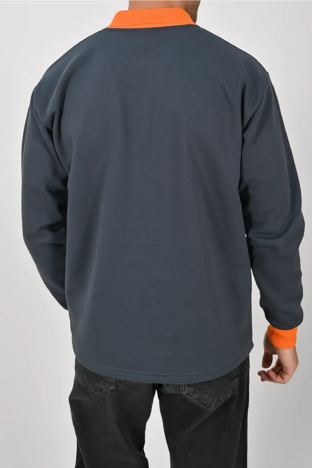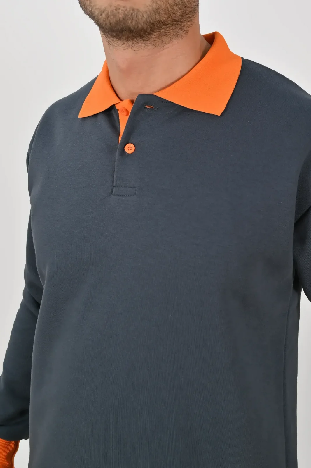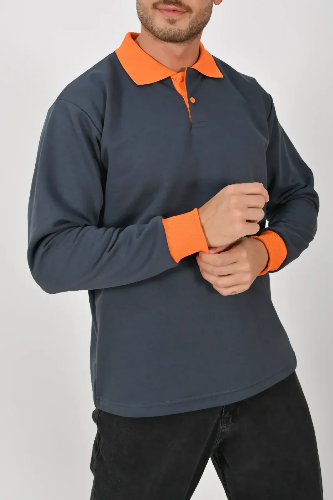 Füme ve turuncunun güçlü kontrastıyla öne çıkan Kışlık Füme Çift Renkli Polo Yaka Sweatshirt Turuncu Yakalı, iddialı bir stil tercih edenler için tasarlanmıştır. XS–5XL beden seçenekleri farklı kullanıcı tiplerine uygundur.