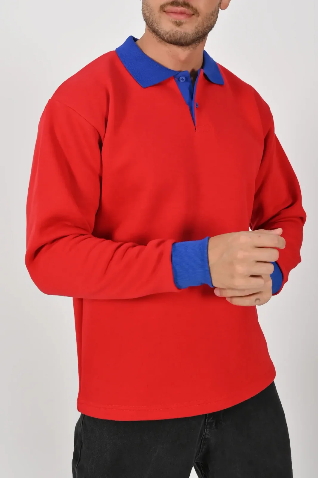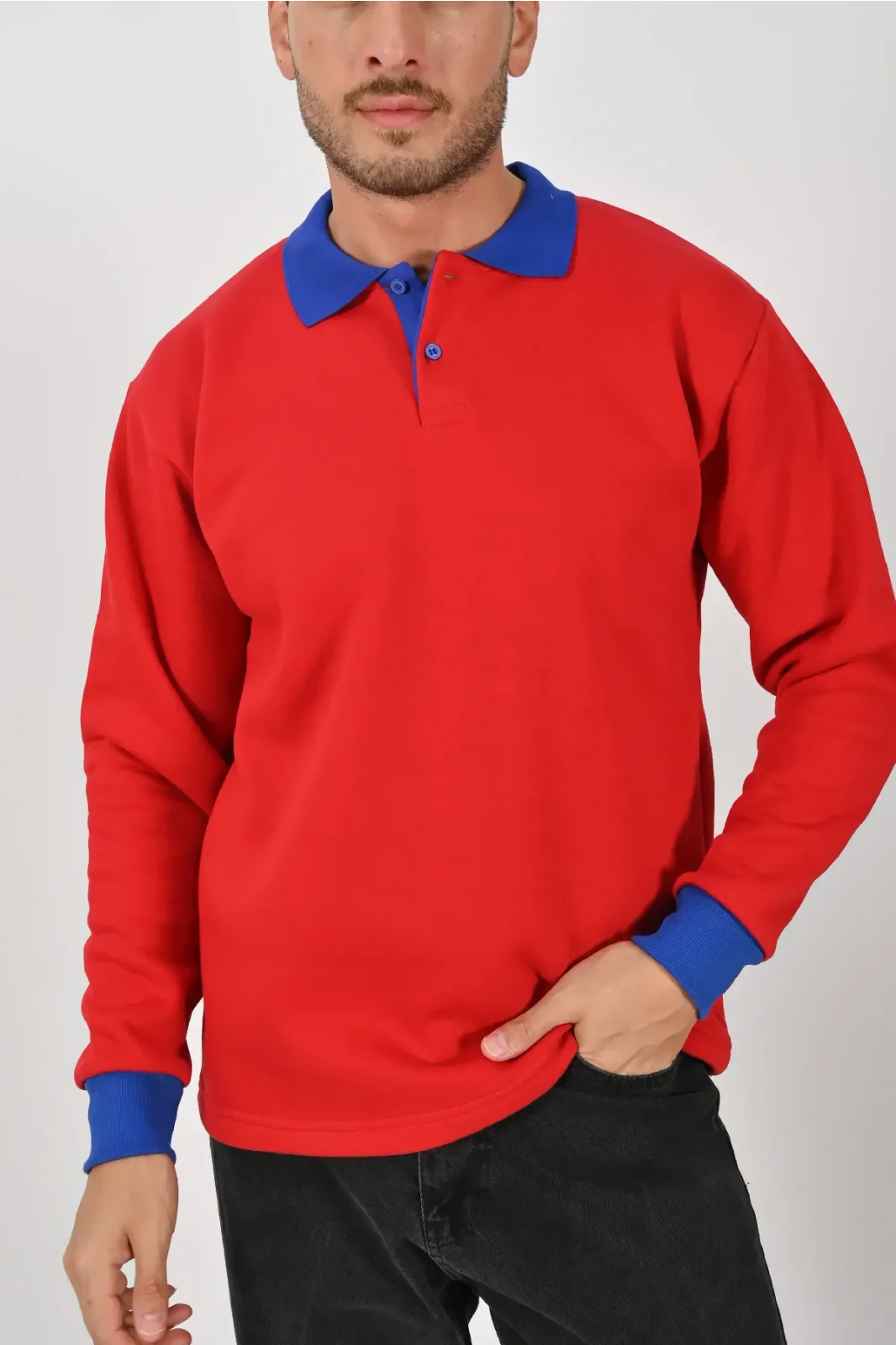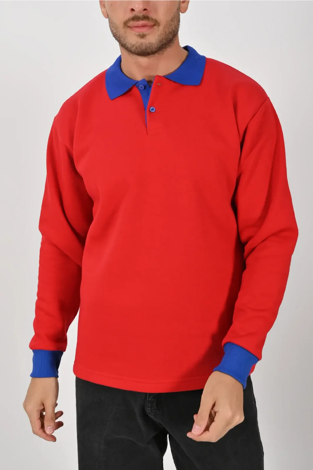 Kırmızı ve sax mavisinin enerjik uyumuyla tasarlanan Kışlık Kırmızı Çift Renkli Polo Yaka Sweatshirt Sax Yakalı, güçlü ve modern bir stil sunar. XS–5XL beden seçenekleri ile farklı kullanıcı tiplerine uygundur.