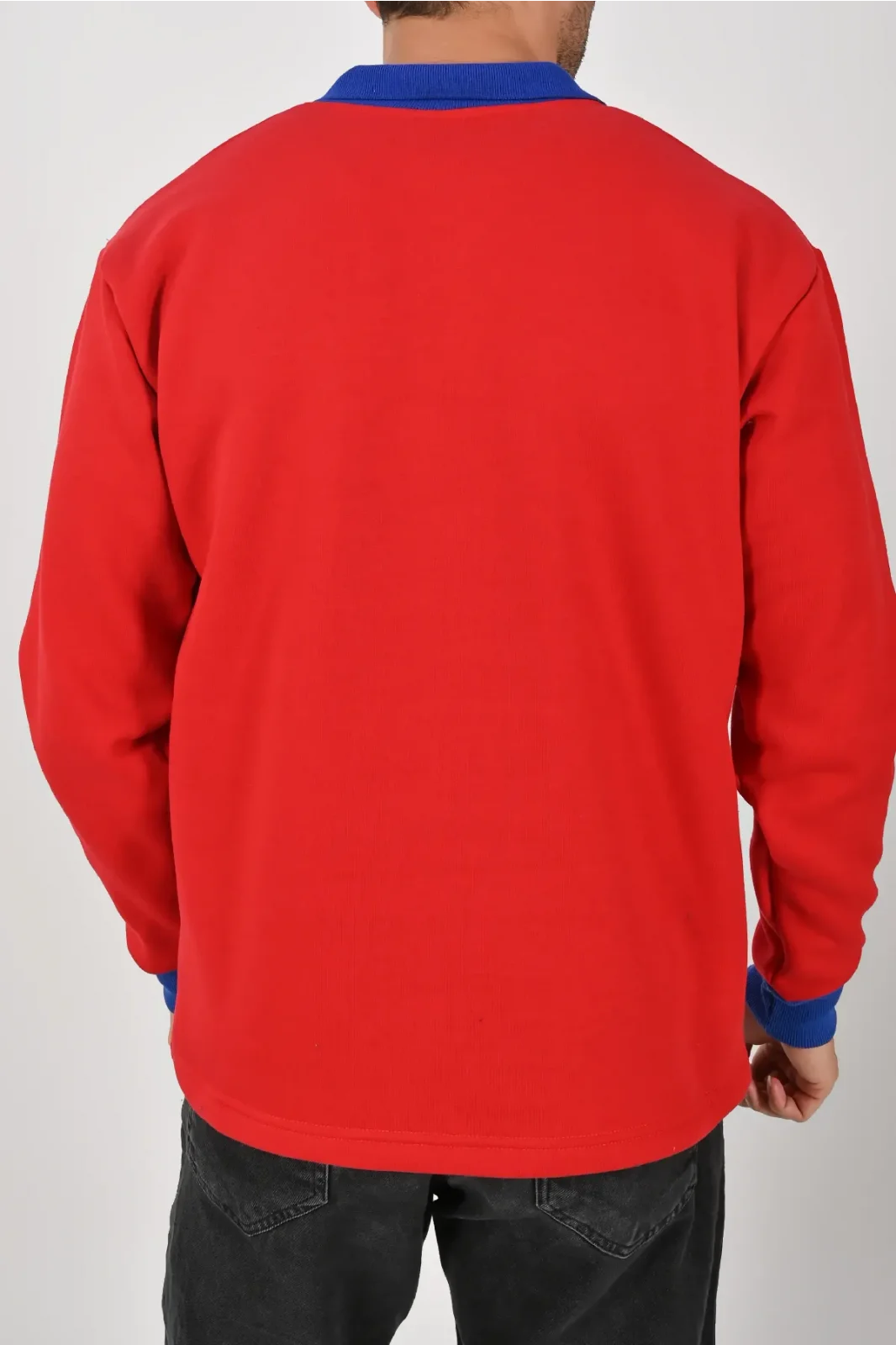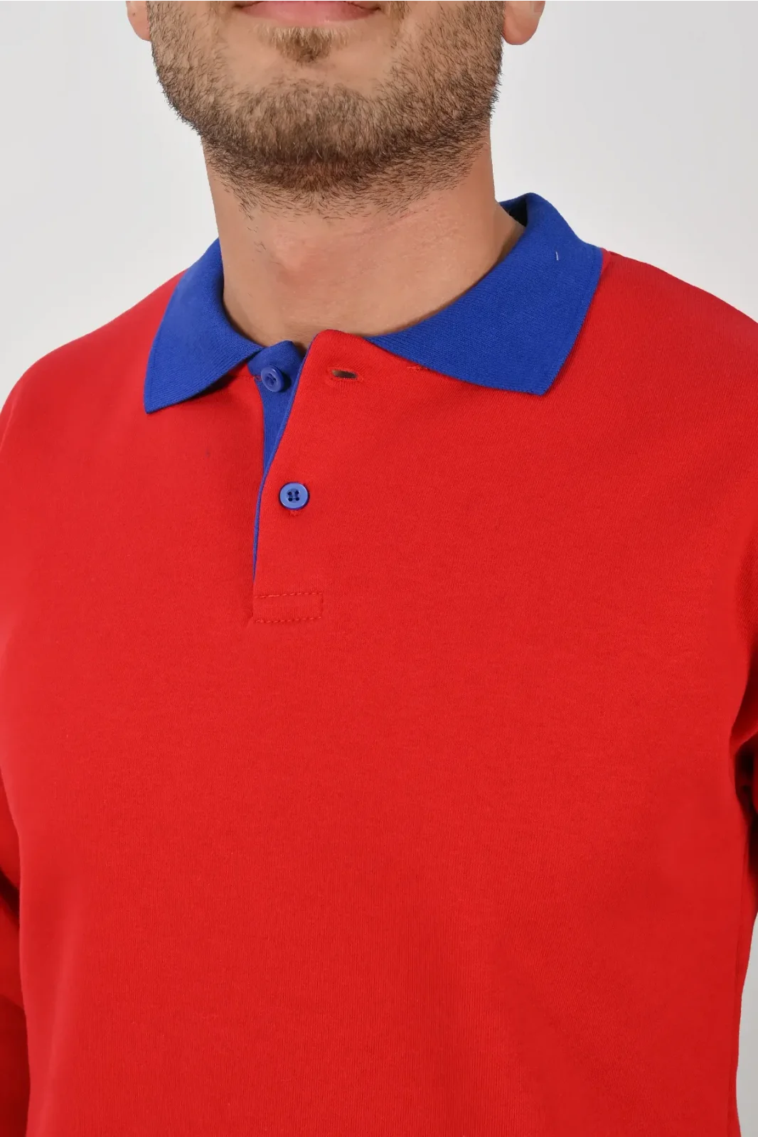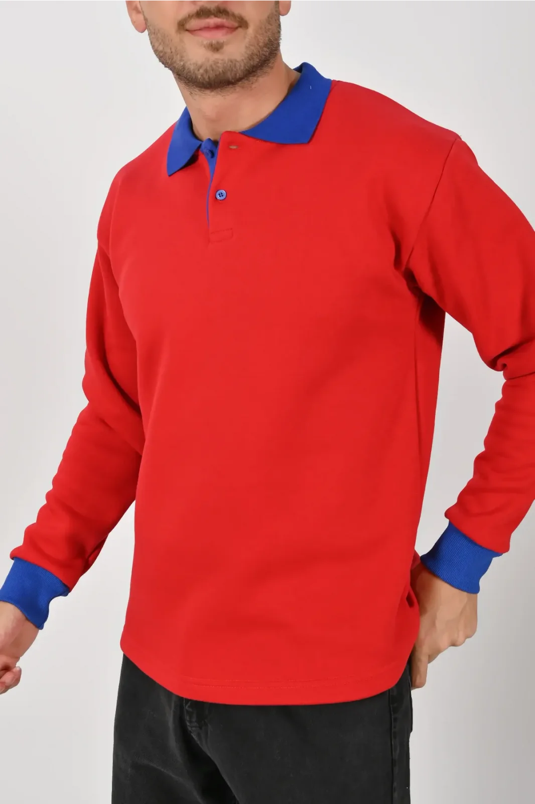 Kırmızı ve sax mavisinin enerjik uyumuyla tasarlanan Kışlık Kırmızı Çift Renkli Polo Yaka Sweatshirt Sax Yakalı, güçlü ve modern bir stil sunar. XS–5XL beden seçenekleri ile farklı kullanıcı tiplerine uygundur.
