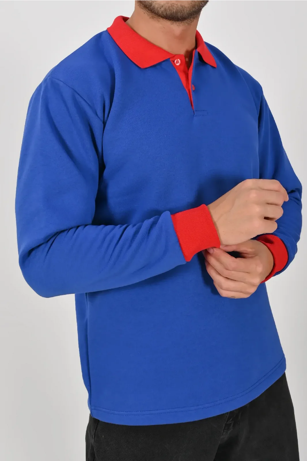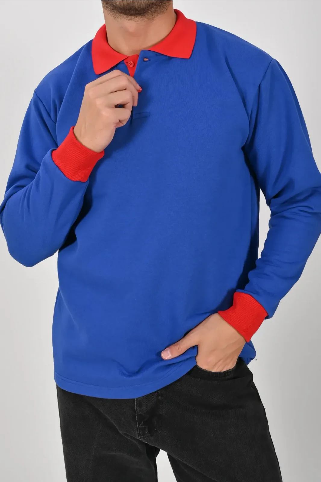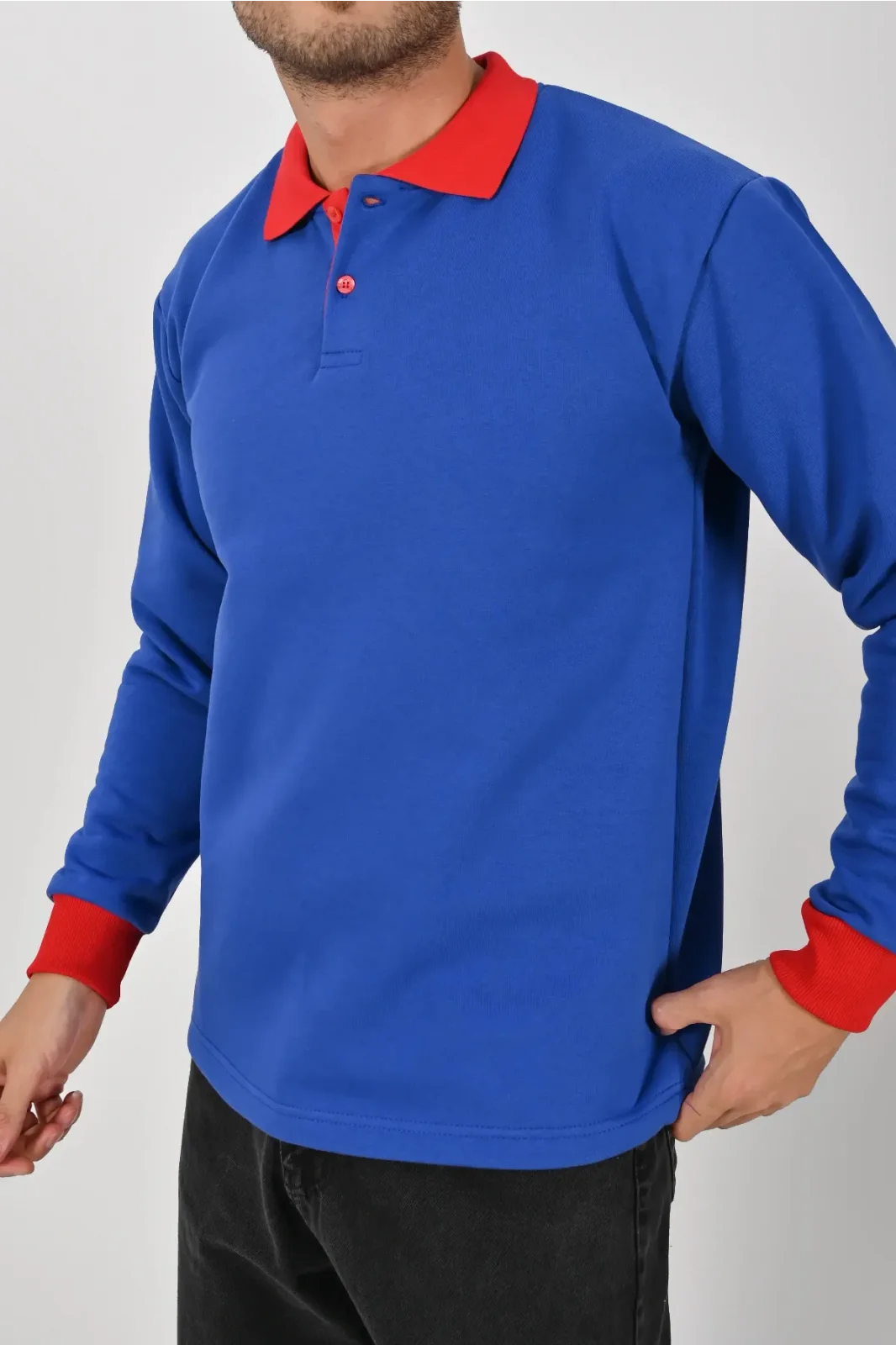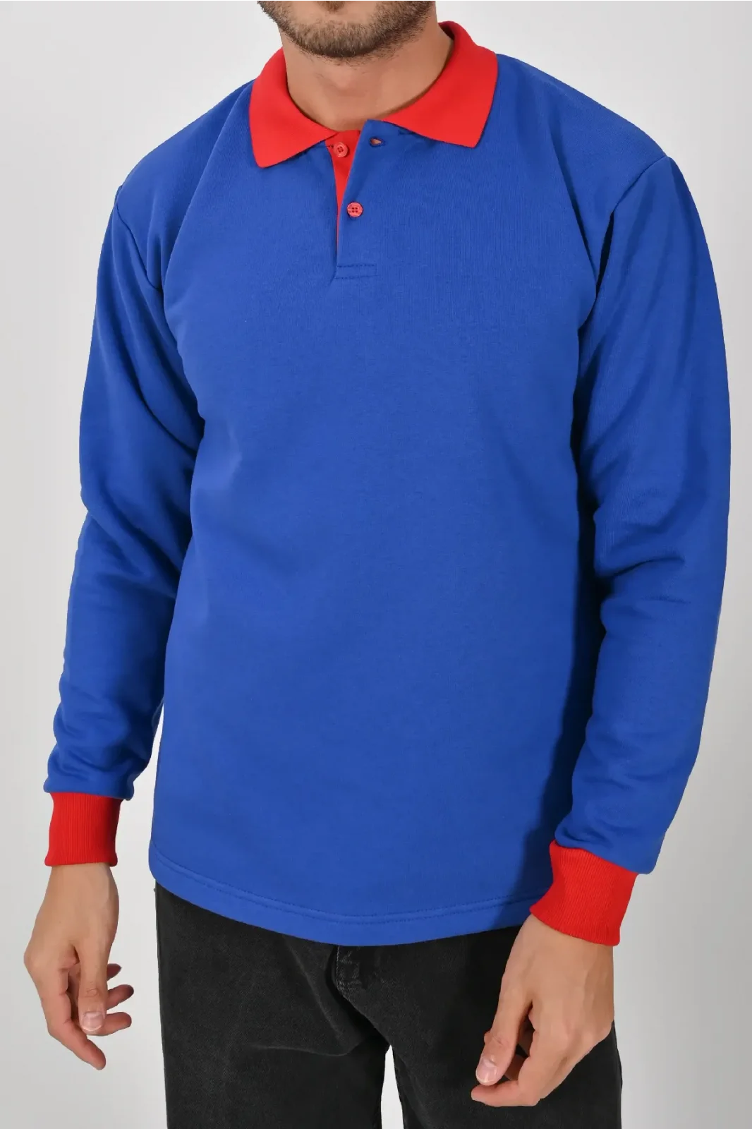 Sax mavisi ve kırmızının güçlü uyumuyla tasarlanan Kışlık Sax Çift Renkli Polo Yaka Sweatshirt Kırmızı Yakalı, enerjik ve modern bir görünüm kazandırır. XS–5XL beden seçenekleri ile farklı kullanıcı gruplarına uygundur.