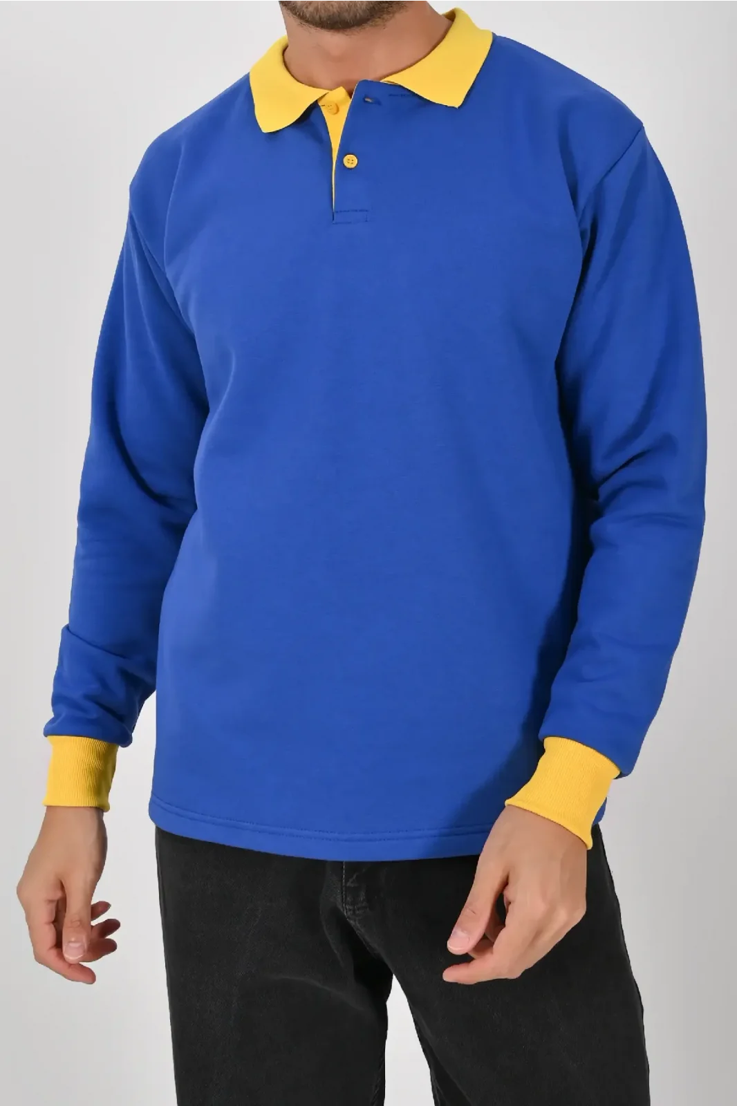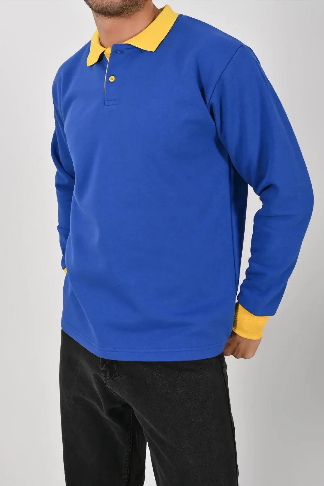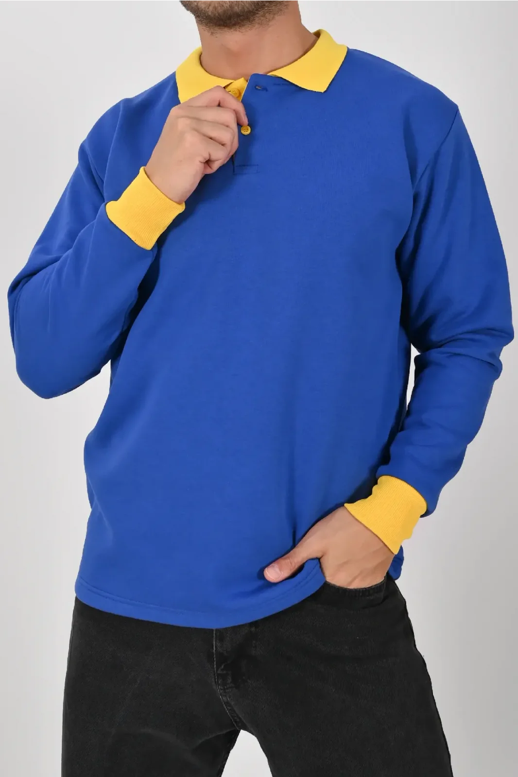 Sax mavisi ve sarının canlı kontrastıyla öne çıkan Kışlık Sax Çift Renkli Polo Yaka Sweatshirt Sarı Yakalı, enerjik bir stil isteyenler için tasarlanmıştır. XS–5XL beden seçenekleri geniş kitlelere uygundur.