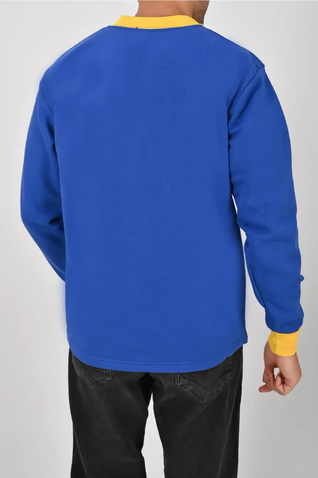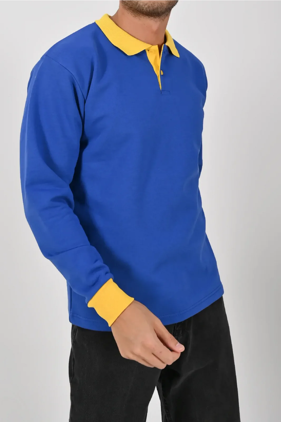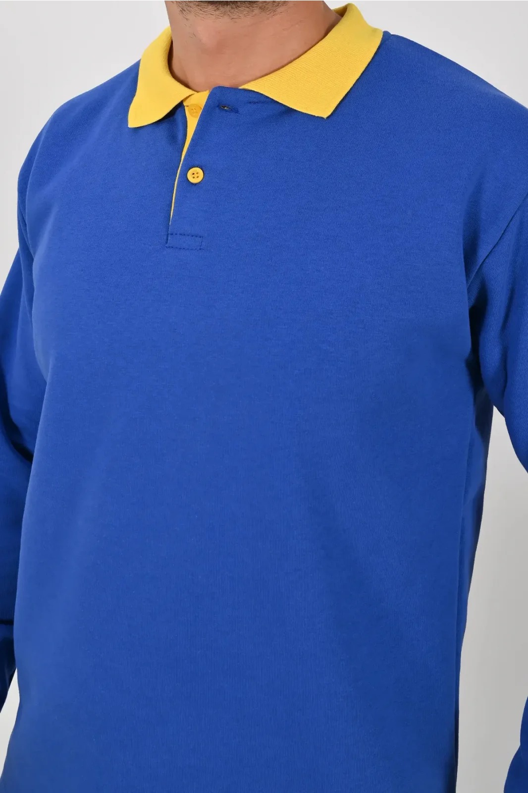 Sax mavisi ve sarının canlı kontrastıyla öne çıkan Kışlık Sax Çift Renkli Polo Yaka Sweatshirt Sarı Yakalı, enerjik bir stil isteyenler için tasarlanmıştır. XS–5XL beden seçenekleri geniş kitlelere uygundur.