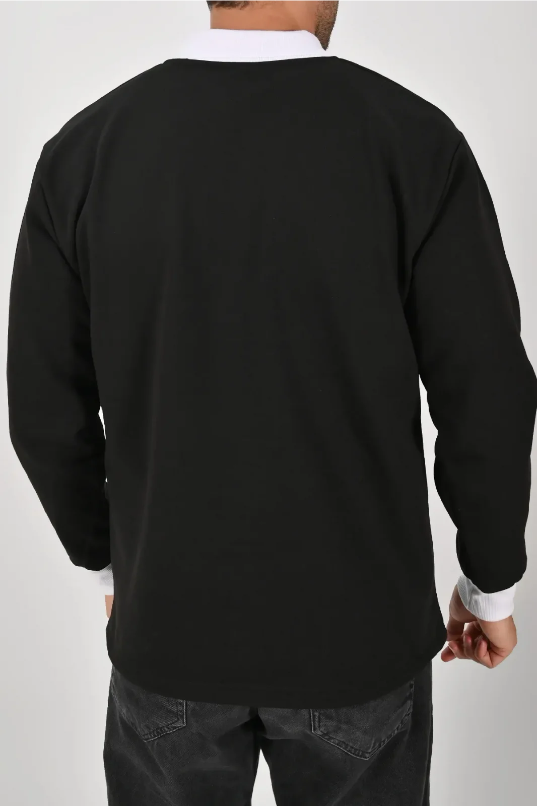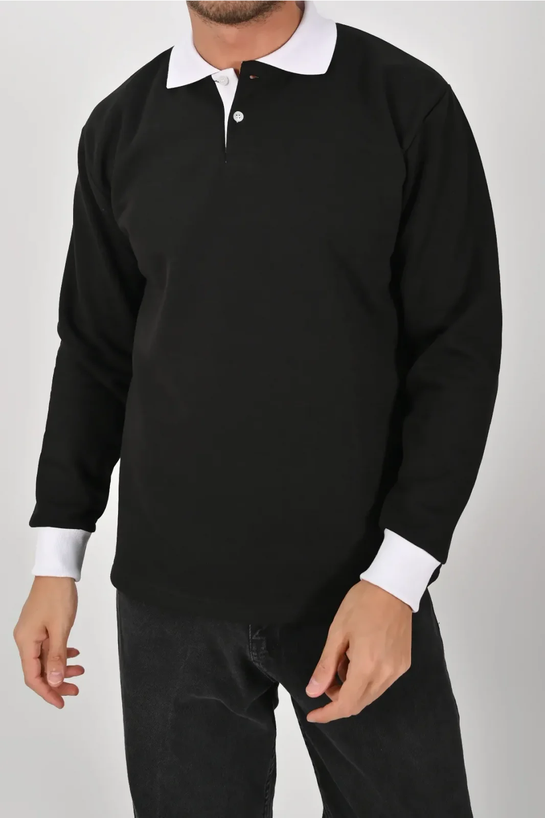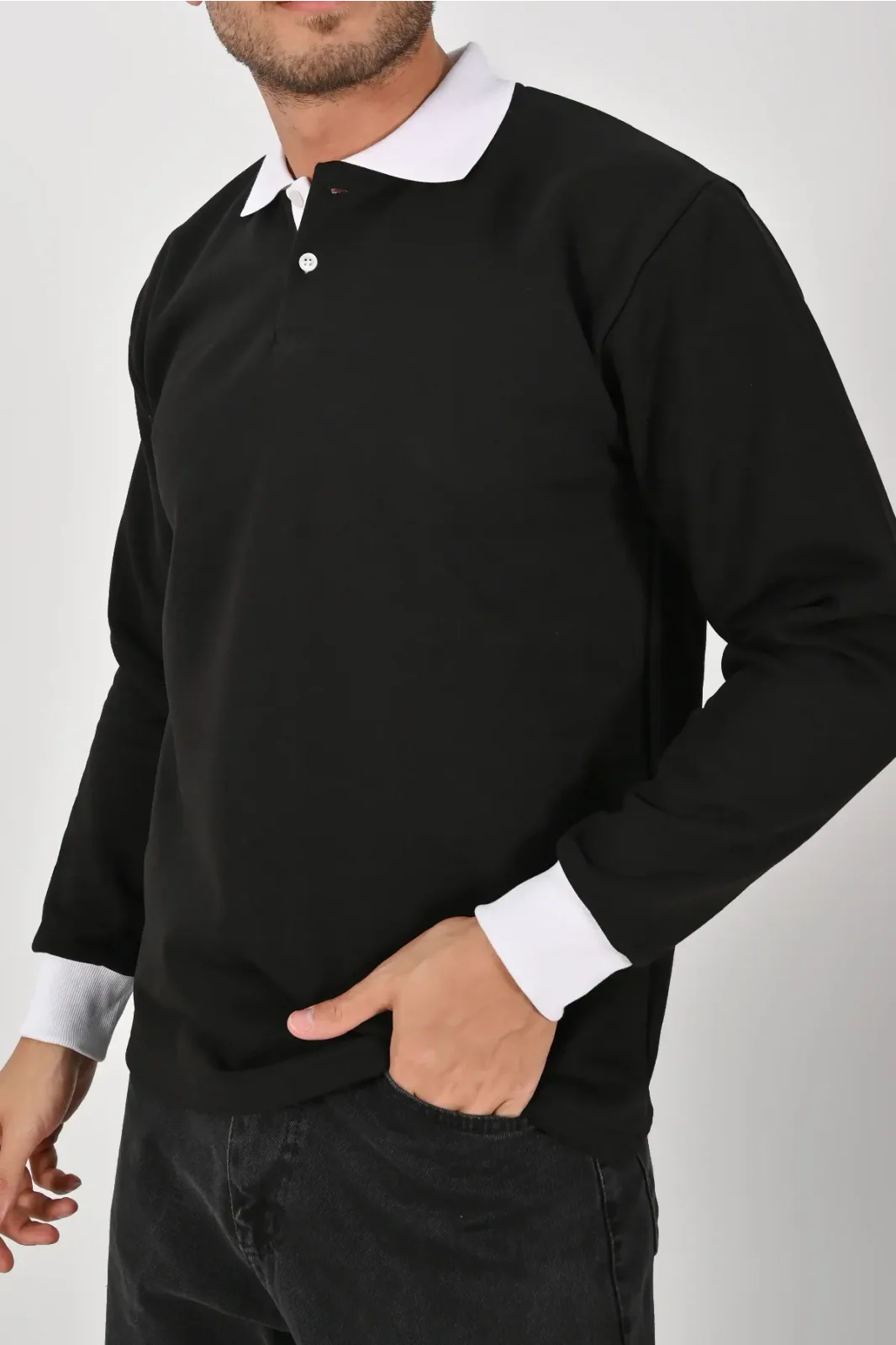 Siyah ve beyazın klasik kontrastıyla öne çıkan Kışlık Siyah Çift Renkli Polo Yaka Sweatshirt Beyaz Yakalı, zamansız bir stil sunar. XS–5XL beden aralığı farklı vücut tiplerine uygundur.