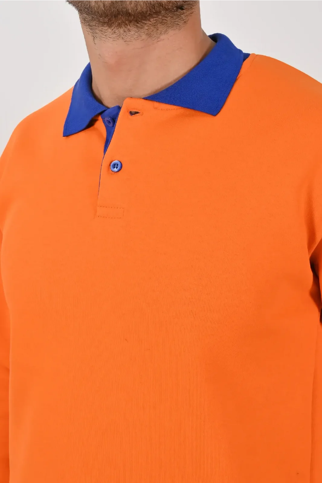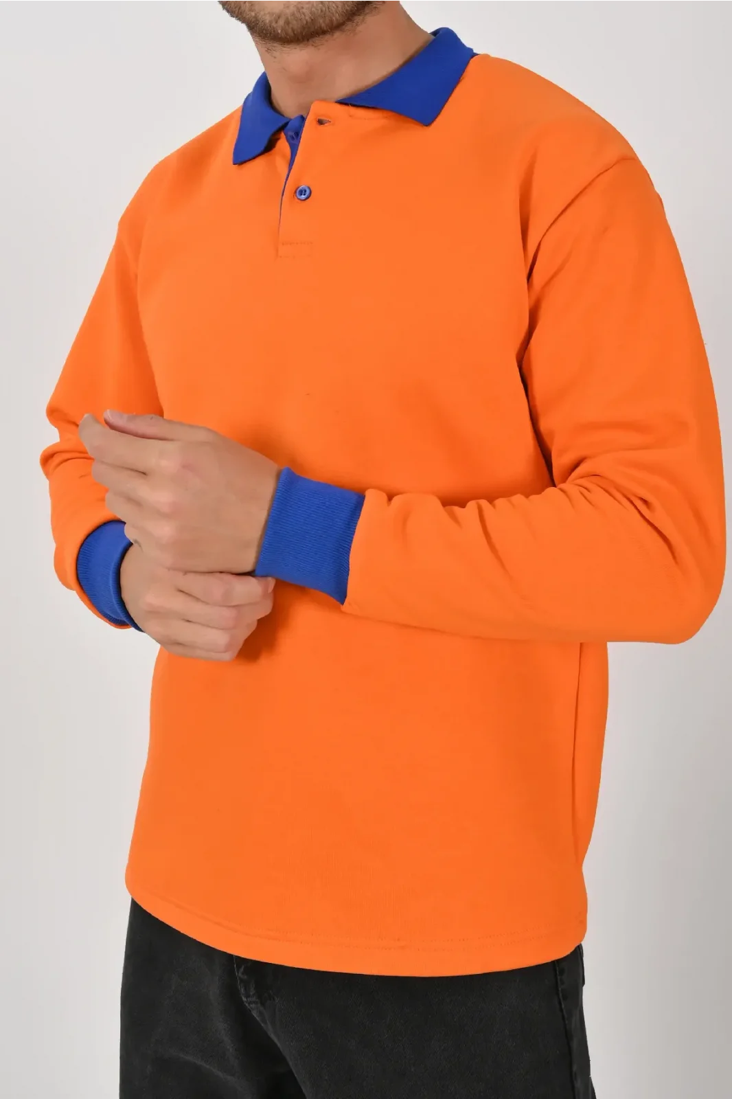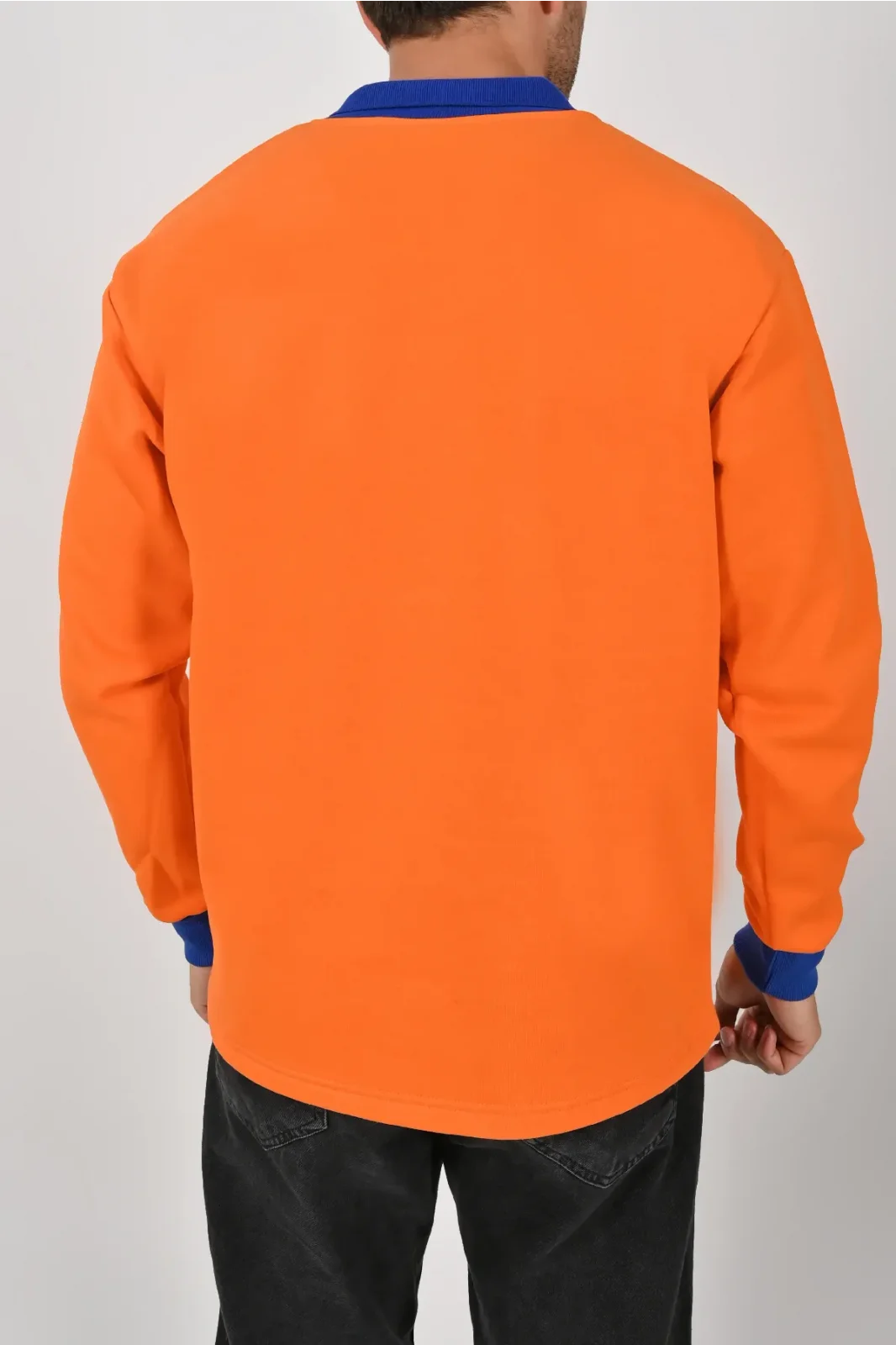 Turuncu ve sax mavisinin enerjik kontrastıyla tasarlanan Kışlık Turuncu Çift Renkli Polo Yaka Sweatshirt Sax Yakalı, dikkat çekici bir stil sunar. XS–5XL beden seçenekleri farklı kullanıcı tiplerine uygundur.