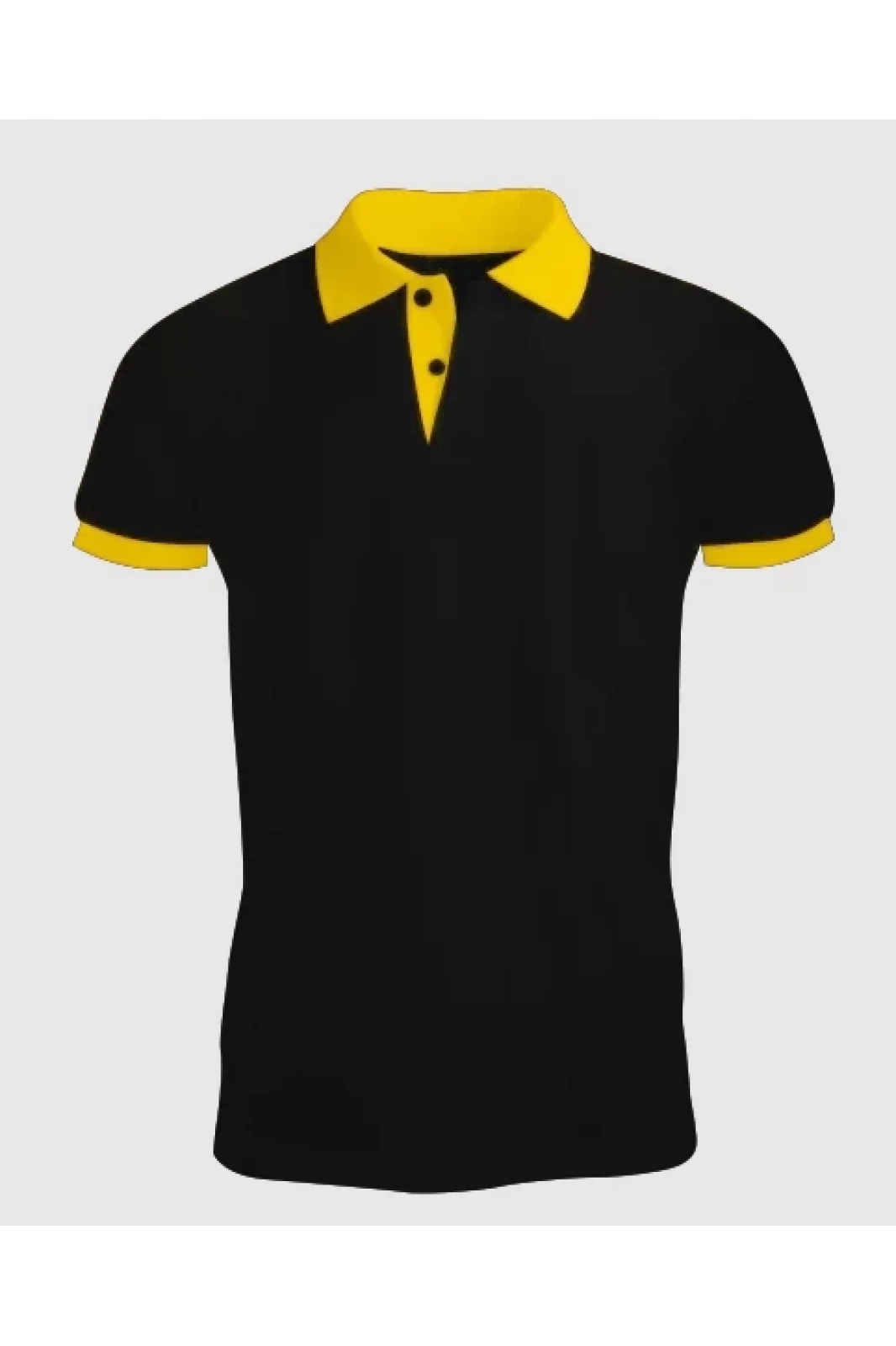 Siyah Polo Yaka Tişört Sarı Yakalı Çift Renkli