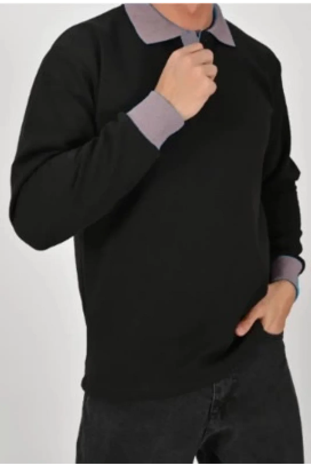 UZUN KOL POLO YAKA TİŞÖRT SİYAH